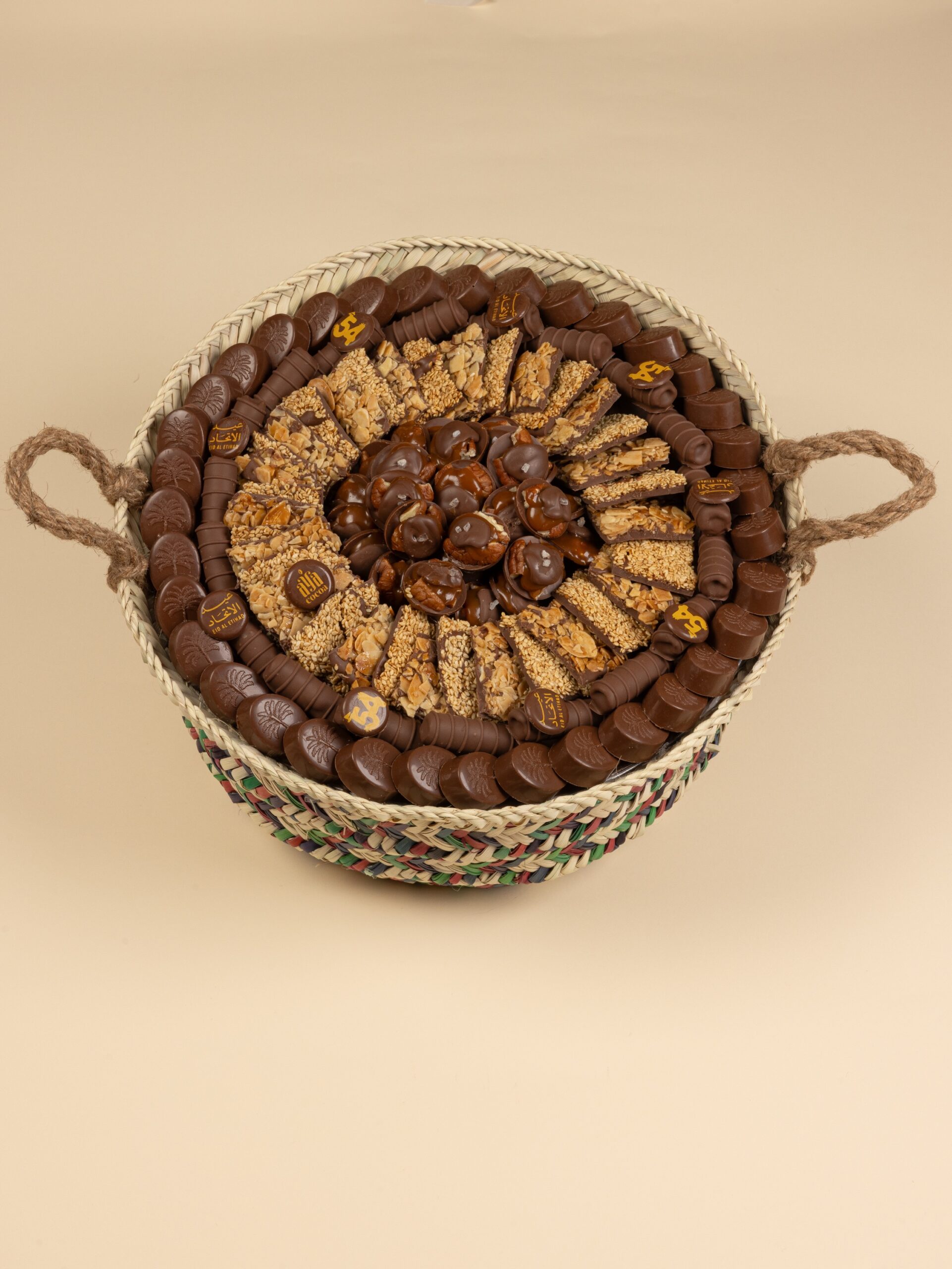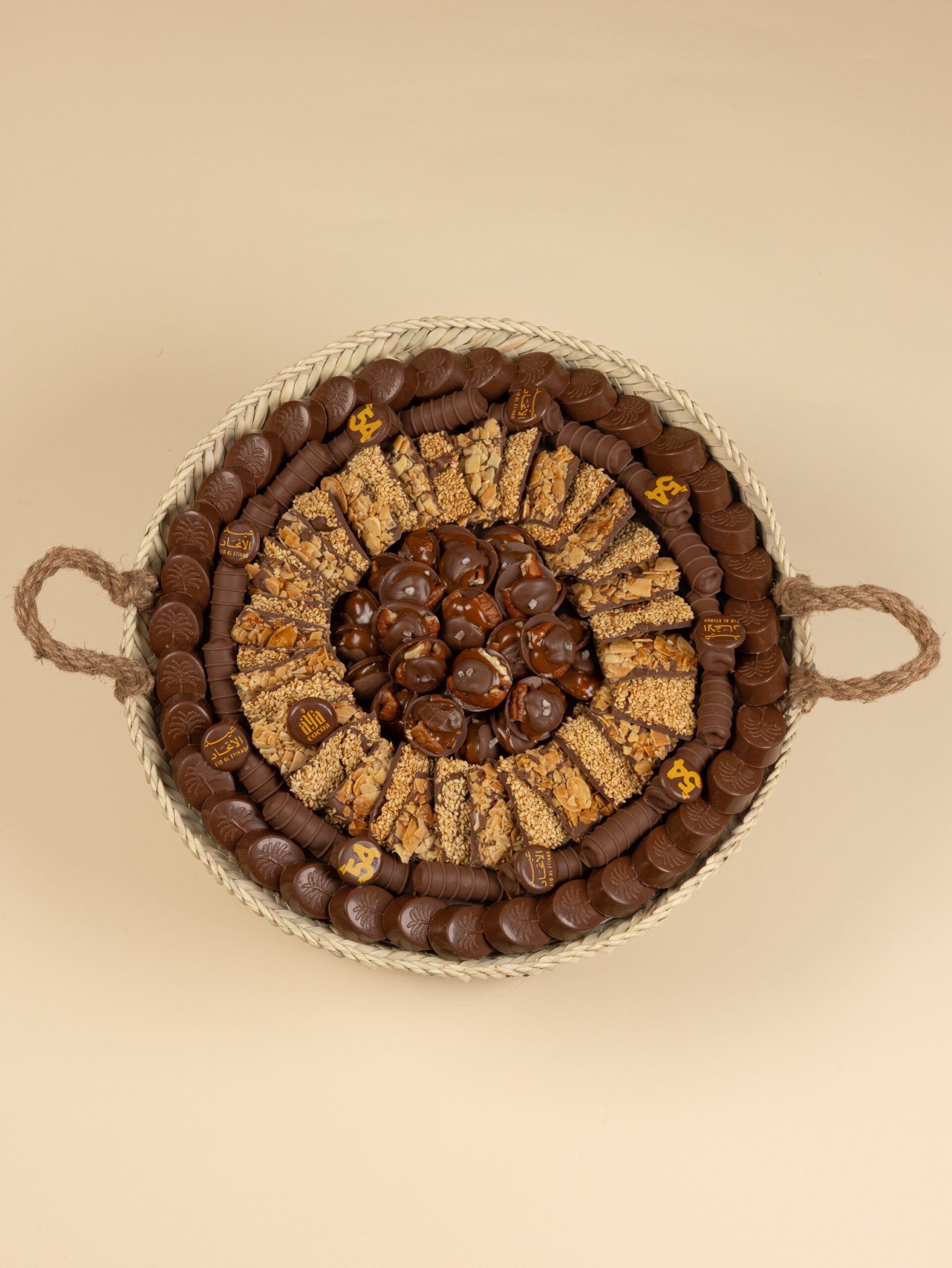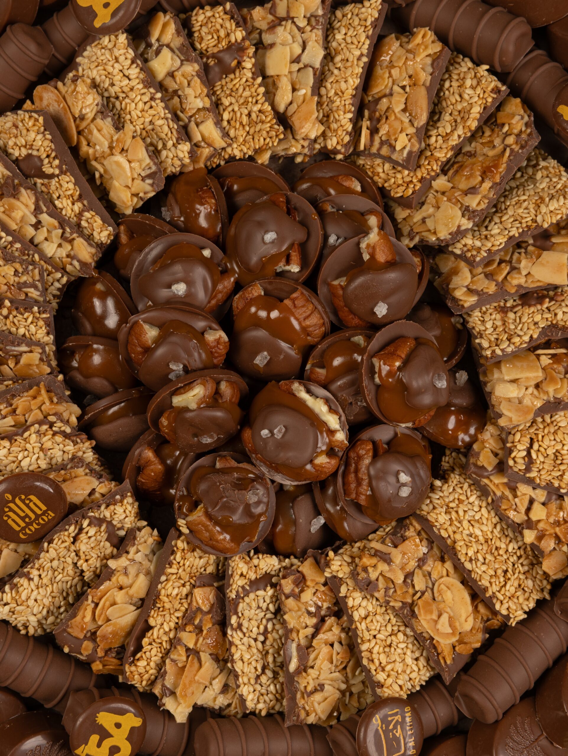 – سمسم مكرمل بطبقة من الشوكولاتة الرقيقة