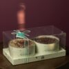 – علبة دائريه تحتوي على ميني ويفر المقرمش بنكهة الكندر بخطوط بيضاء .